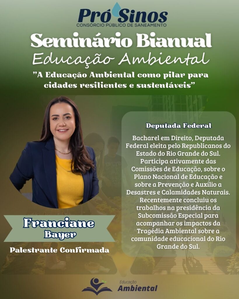 - Deputada Federal do Rio Grande do Sul Franciane Bayer – Preside a subcomissão do sistema nacional de educação, participante das Comissões de Educação; sobre o Plano Nacional de Educação 2024-2034 (PL 2614/24); sobre Prevenção e Auxílio a Desastres e Calamidades Naturais. Recentemente concluiu os trabalhos na presidência da Subcomissão Especial para Acompanhar os Impactos da Tragédia Ambiental sobre a Comunidade Educacional do Rio Grande do Sul.