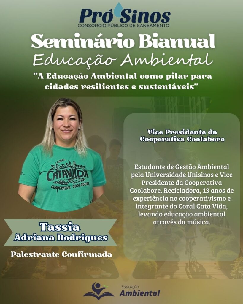 - Tassia Adriana Rodrigues – Vice presidente da Cooperativa Coolabore, recicladora, estudante de Gestão Ambiental pela Unisinos, 13 anos de experiência no cooperativismo, integrante do Coral Cata Vida, levando educação ambiental através da música.
