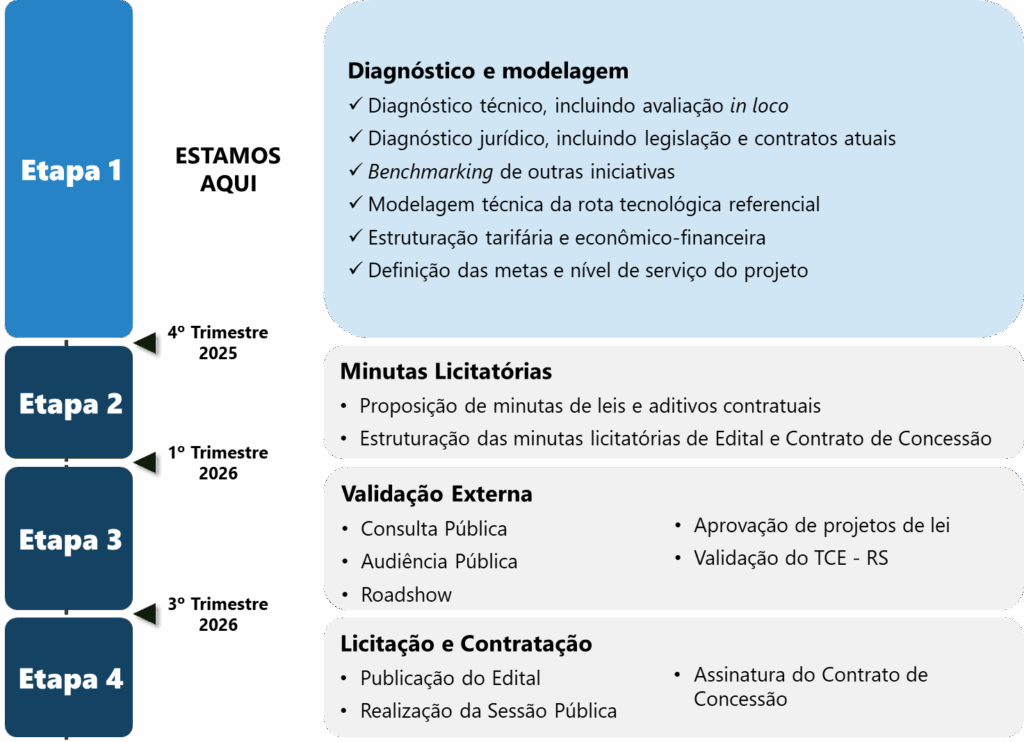 da concessão conta com o apoio técnico da CAIXA, e financeiro do Governo Federal, por meio do Fundo de Apoio à Estruturação de Projetos de PPP e Concessão (FEP CAIXA) em parceria com o BID, que fizeram a contratação de um Grupo Consultor, com corpo técnico multidisciplinar, formado pelas empresas Ikons, Accenture, Tetra Tech, Ambiental Engenharia e a Maciel Rocha Advogados.
